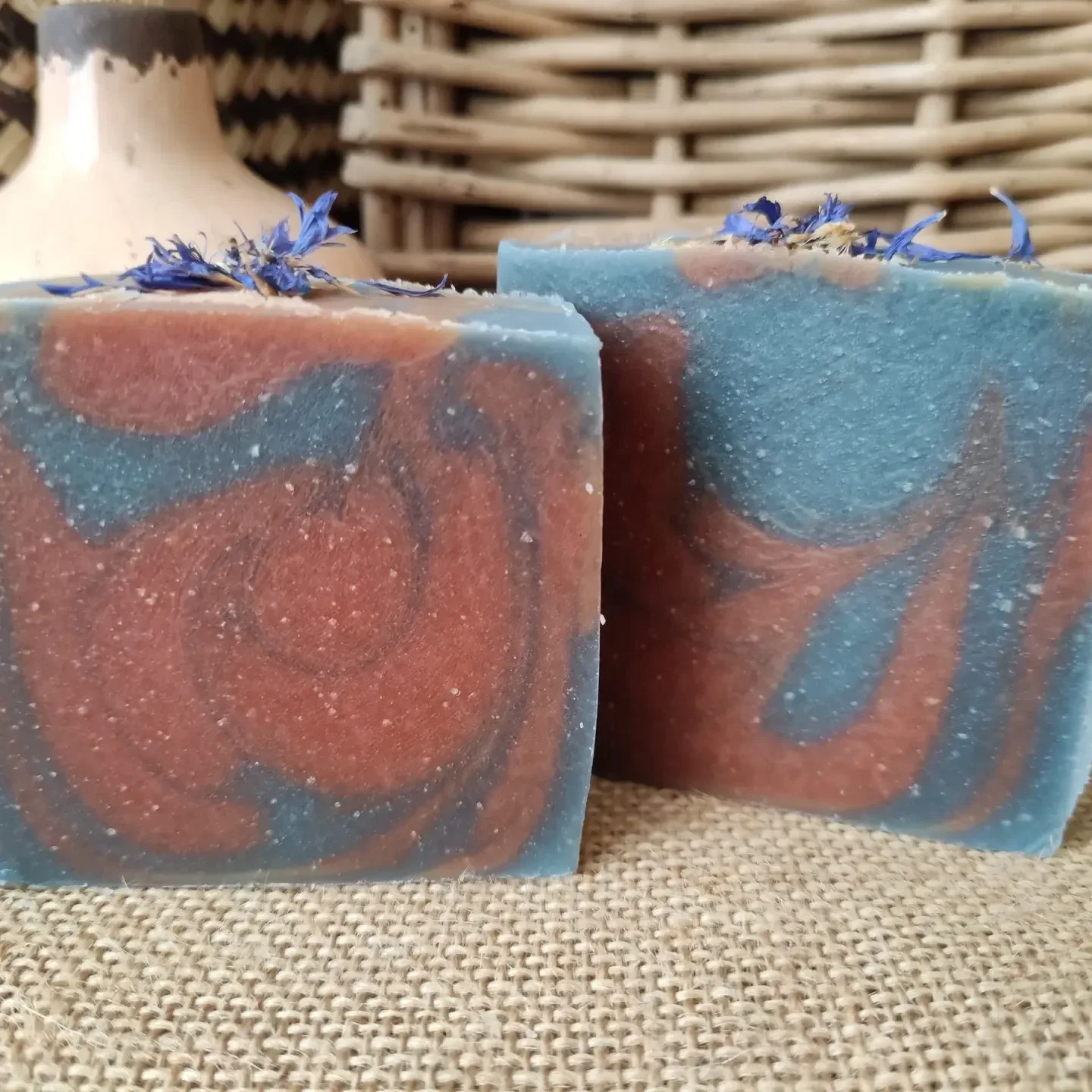 Samenstelling: verzeepte en onverzeepte biologische olijf-, kokosnoot-, shea-, zonnebloem-, castor-, sesam-, glycerine-, geranium- en ylang-ylang biologische etherische oliën, biologisch manjishta-poeder, actieve kool, blauw mineraaloxide en korenbloembloemen INCI: natriumolivaat**, natriumcocoaat**, aqua, glycerine**, natriumsheaboteraat**, natriumzonnebloemzaad**, natriumcastoraat**, sesamum-indicumzaadolie*, Olea Europaea fruitolie*, Cocos Nucifera-olie*, Pelargonium Graveolens-bloemolie*, Cananga Odorata-bloemolie*, Rubia Cordifolia-wortelpoeder, spermum Parkii-boter*, Helianthus Annuus-zaadolie*, Ricinus Communis-zaadolie*, CI 77007, siliciumdioxide, houtskoolpoeder, benzylbenzoaat***, benzylsalicylaat***, citronellol***, Eugenol***, Farnesol***, Geraniol***