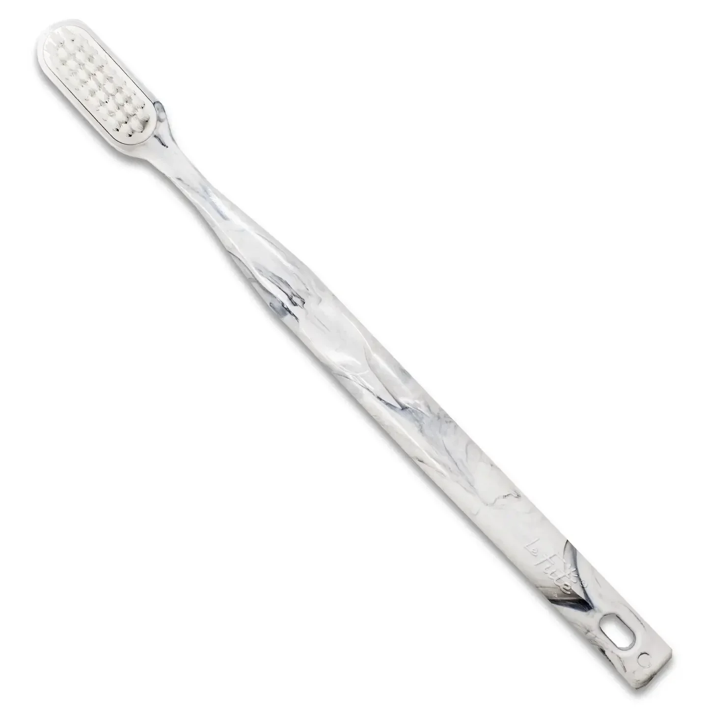 De tandenborstel van Le Futé, gemaakt in Frankrijk, is afkomstig van ecologische oorsprong en bestaat uit visnetten (gebruikte netten geoogst in de haven van Brest) en gerecycled plastic uit upcycling.