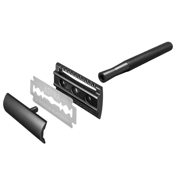 Schroef de 2 plaatjes van je scheermesje los en leg het nieuwe safety razor mesje er tussen. Easy peasy!