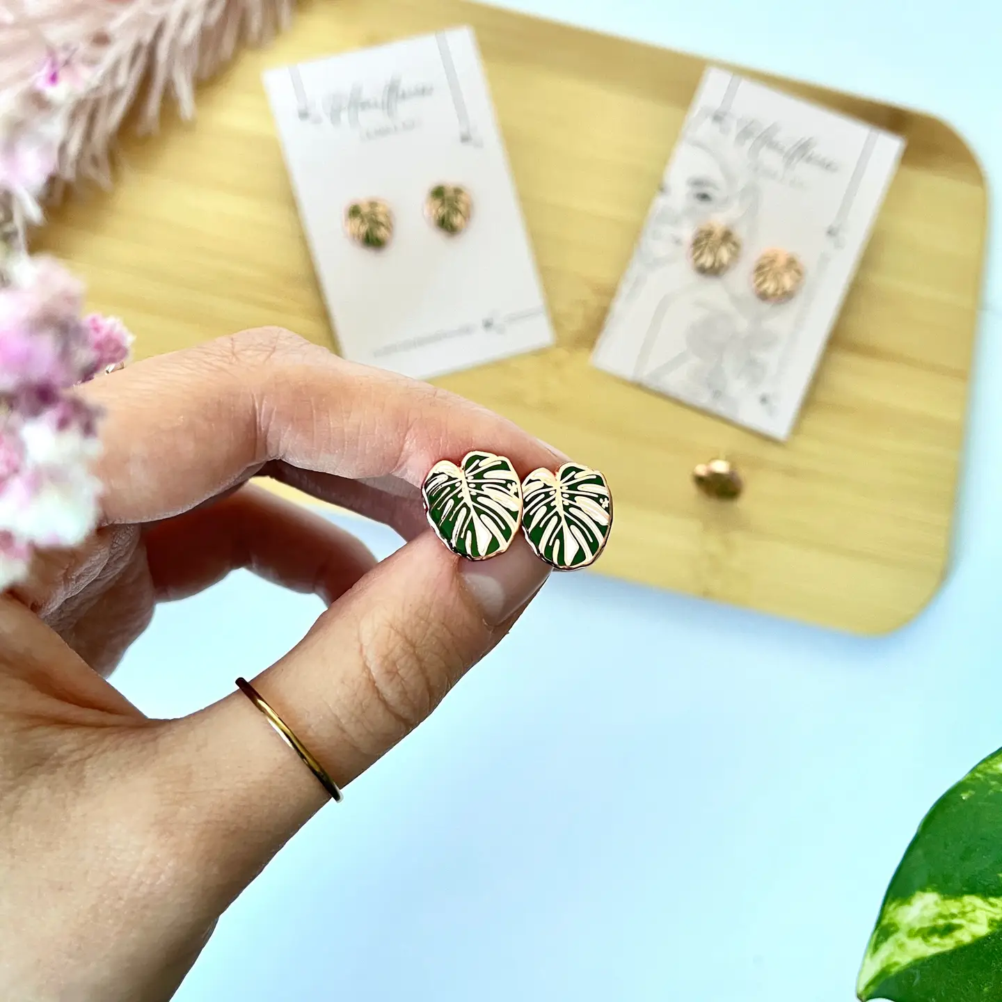 Voeg een vleugje natuur toe aan je dagelijkse look met deze unieke oorbellen met bladeren van Monstera variegata. Ontworpen voor plantenliefhebbers die hun liefde voor planten aan de buitenwereld willen tonen. Deze hard geëmailleerde oorbellen zijn een unieke aanvulling op je sieradencollectie.
