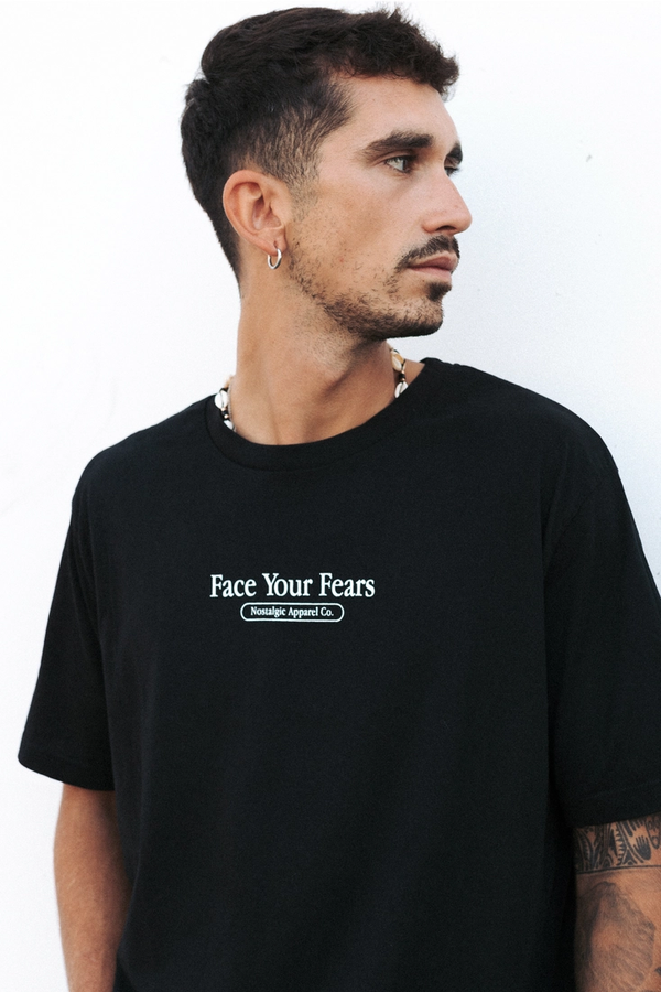 NOSTALGIC APPAREL | Face your fears | Black Tee | loose fit - large