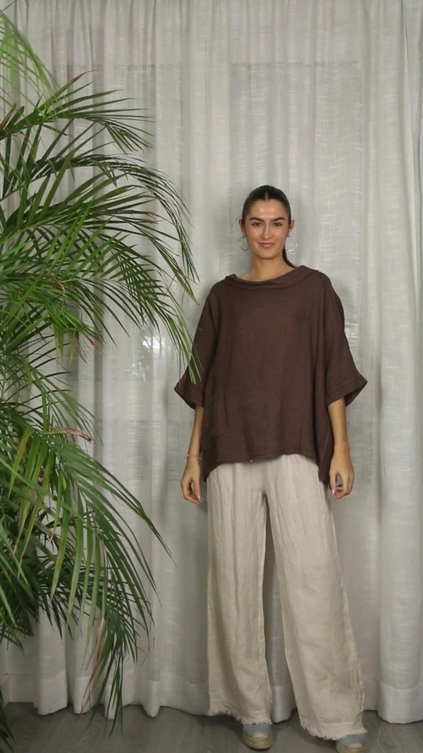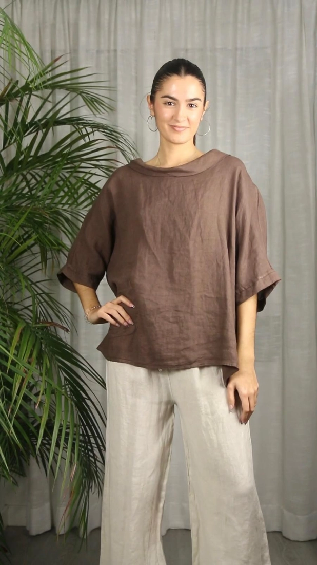 LINEN & MORE | bloese boothals 100% linnen | kaki | one size