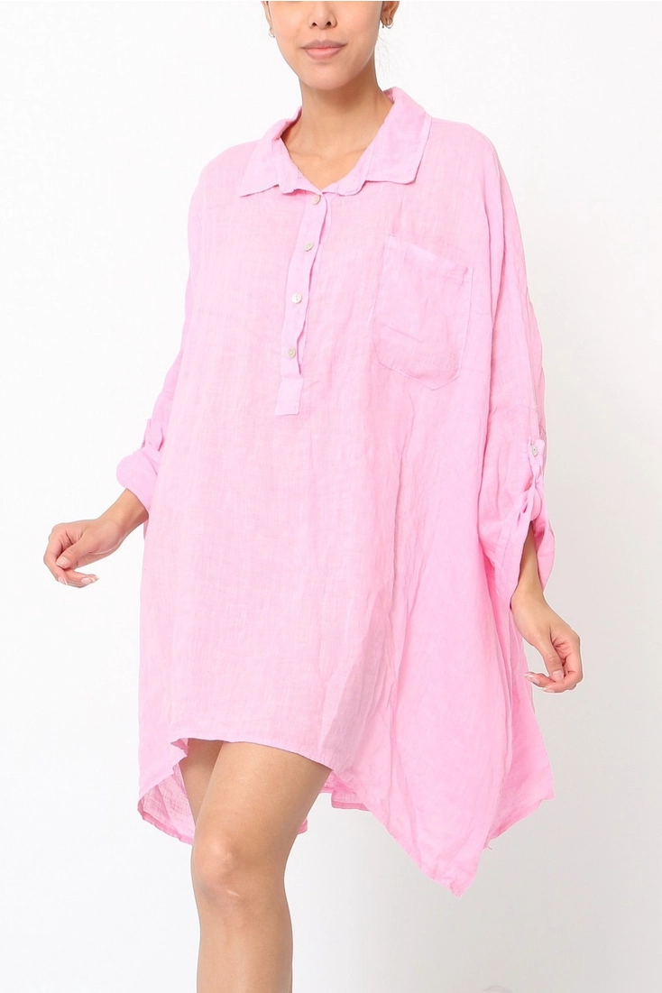 LÉA & LUC | Korte jurk van 100% linnen | groen | one size