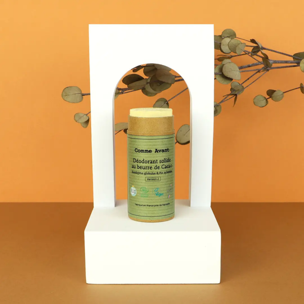 Vaste deodorant met een frisse en houtachtige geur van eucalyptus en grove den. Een deodorant van natuurlijke oorsprong die de transpiratie reguleert en geurtjes beperkt.