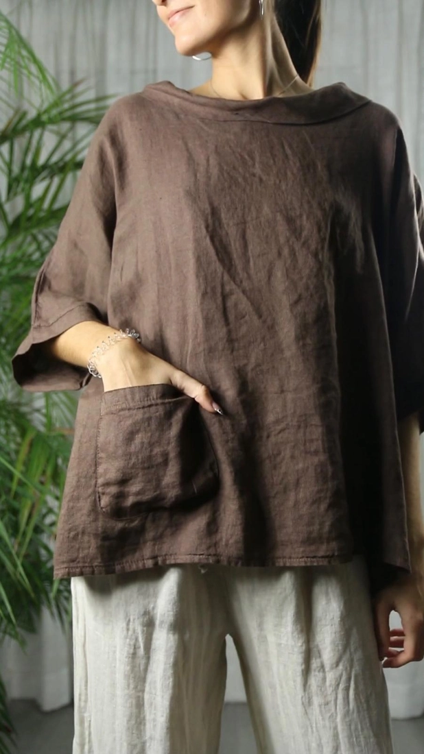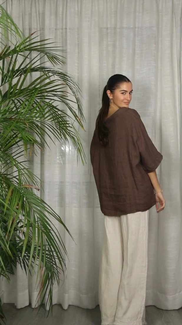 *BLOUSE MET BOOTHALS *SAMENSTELLING 100% LINNEN *AFMETINGEN LENGTE 66 CM EN BREEDTE 66 CM. ONGEVEER
